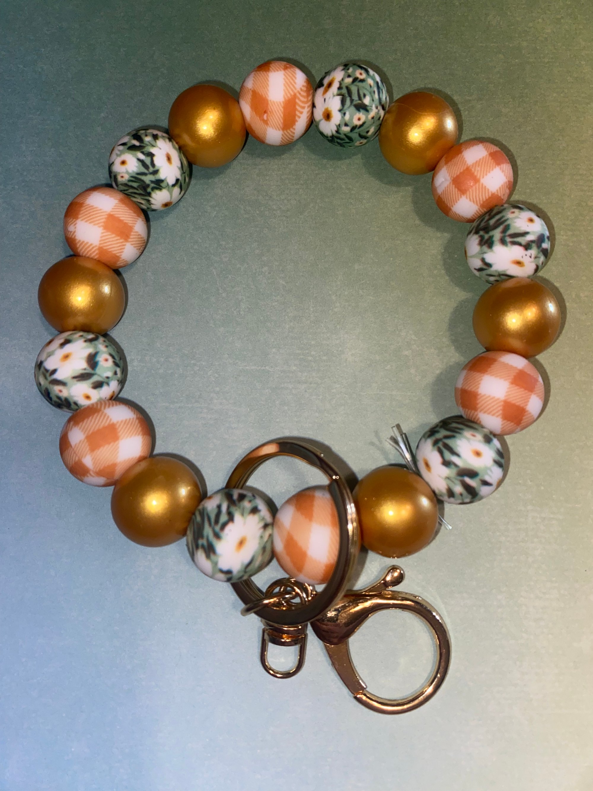 Keep your keys close in style with this green floral and gold wristlet keychain, handcrafted with high-quality silicone beads. The soft yet durable beads make it comfortable to wear on your wrist while the elegant floral and gold accents add the perfect touch of charm. Stylish, functional, and perfect for everyday use!