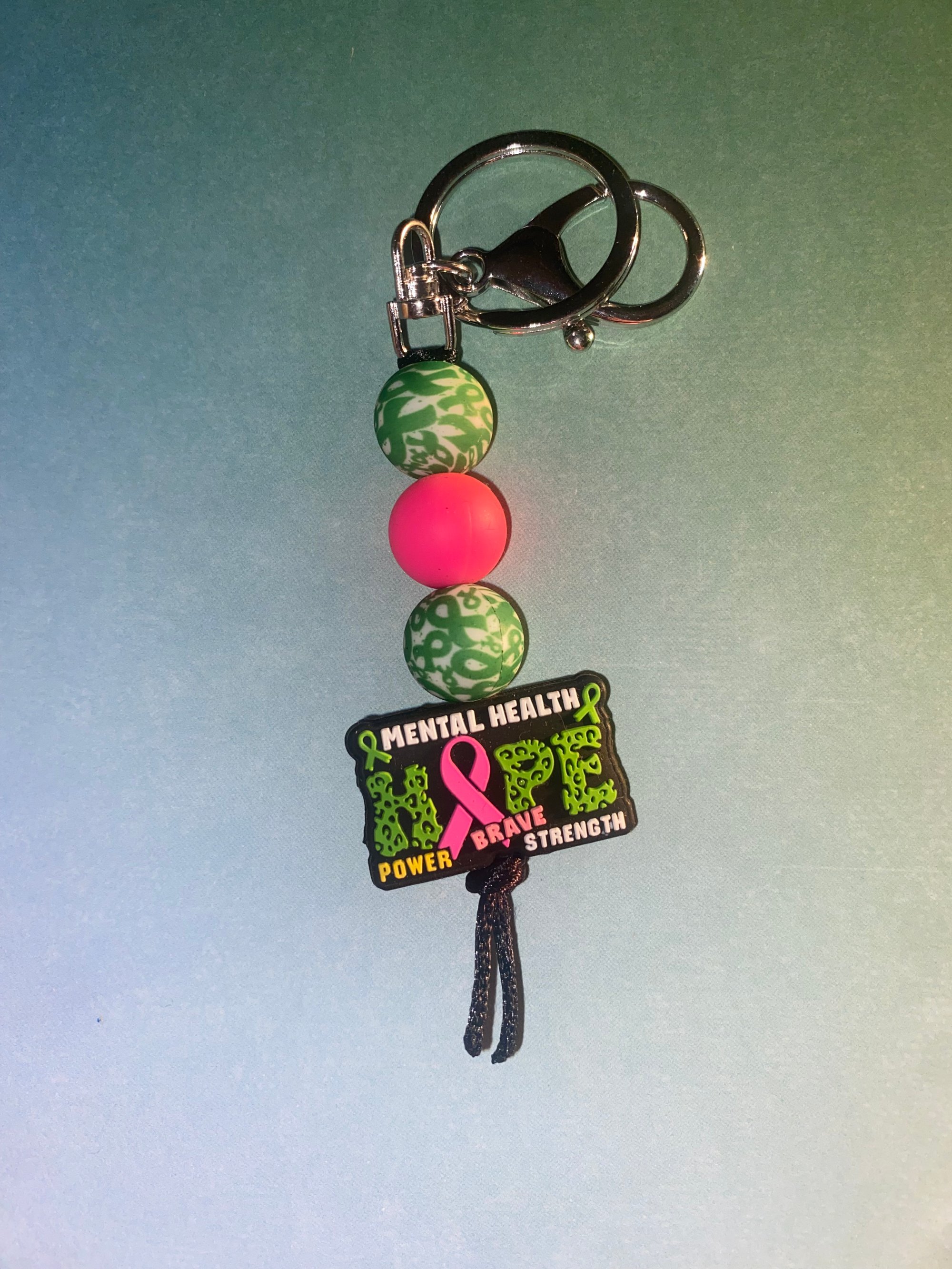 Carry a little reminder that your mental health matters. 💚 This handmade keychain features a mental health awareness focal bead paired with high-quality silicone beads, creating a meaningful accessory you can take anywhere. Perfect for your keys, bag, or backpack, it’s a small but powerful way to spread awareness, start conversations, and remind yourself and others that it’s okay to not be okay.
