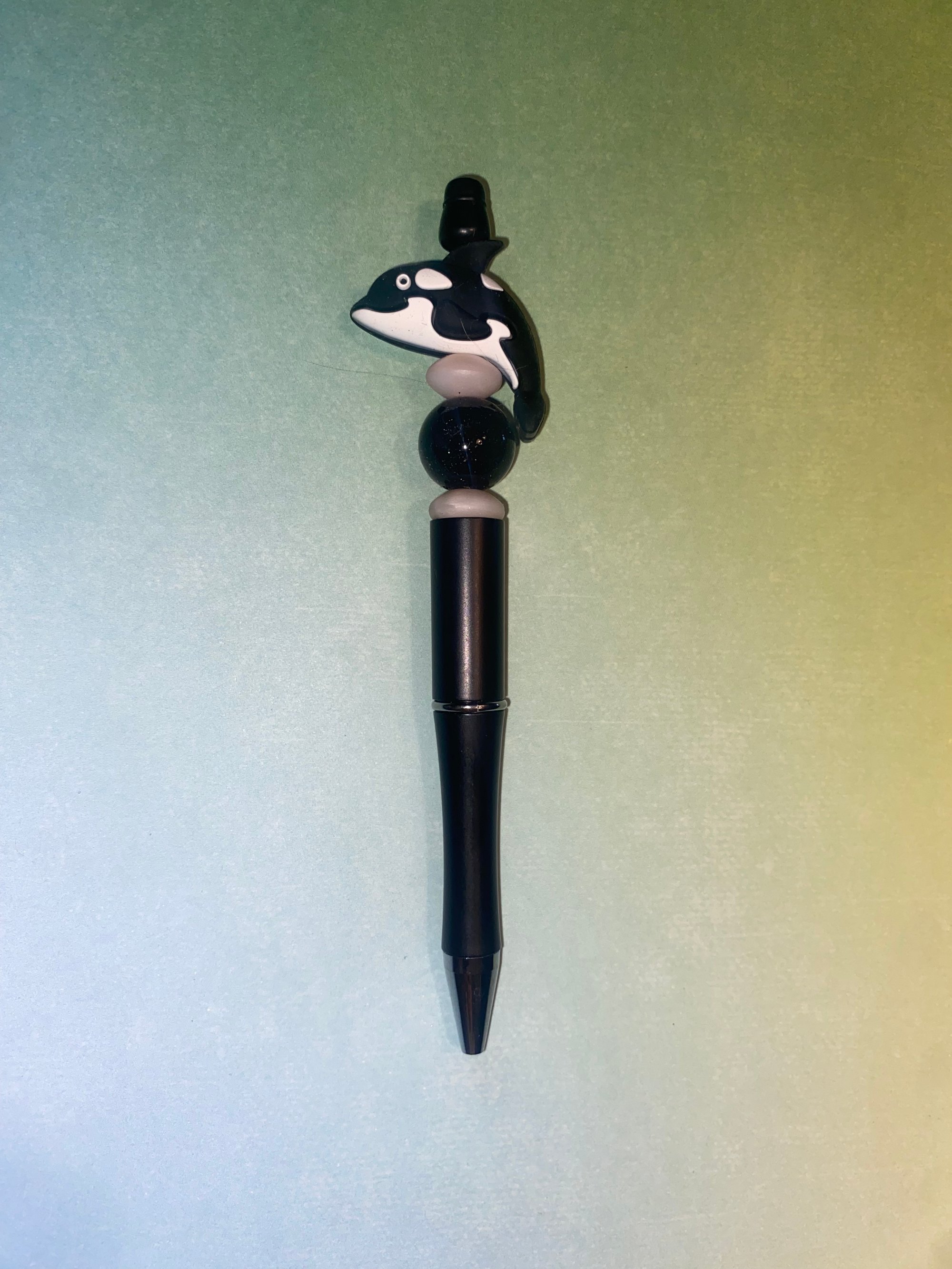 Make a splash with this orca-themed beaded pen! 🐋 Featuring a cute orca focal bead and coordinating silicone beads, this refillable pen is both stylish and fun. Perfect for ocean lovers and a great gift for anyone who enjoys unique accessories.