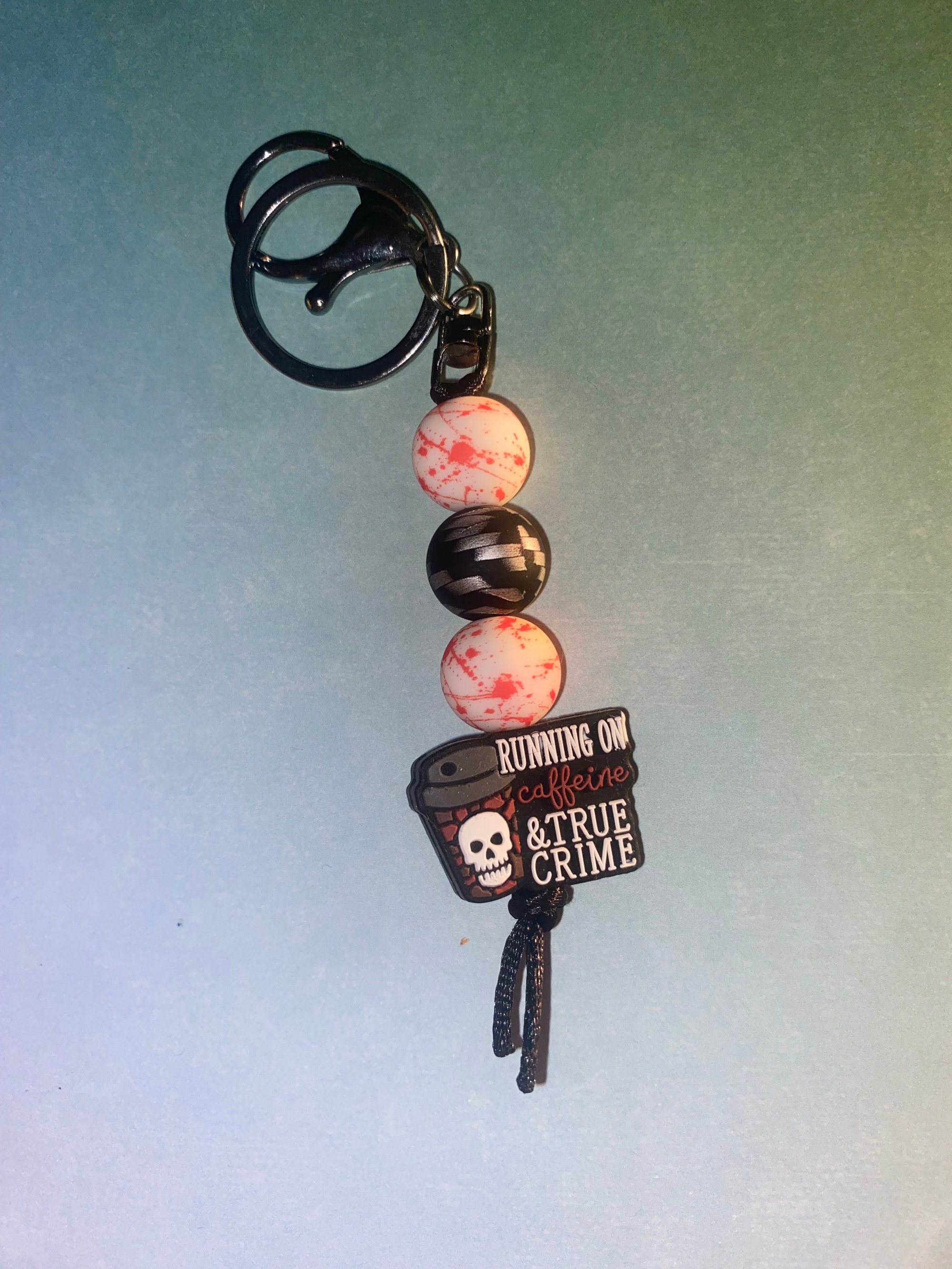For the true crime lovers who can’t function without their daily coffee fix! ☕🔎 This “Running on True Crime and Caffeine” keychain is made with high-quality silicone beads, making it durable, lightweight, and perfect for everyday use.